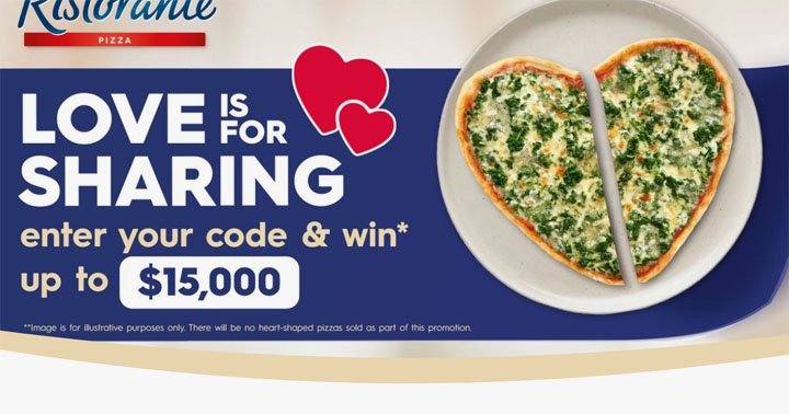 Enter the Ristorante “Love is for Sharing” Promotion for a chance to win $250 grocery gift cards or $15,000 cheques.