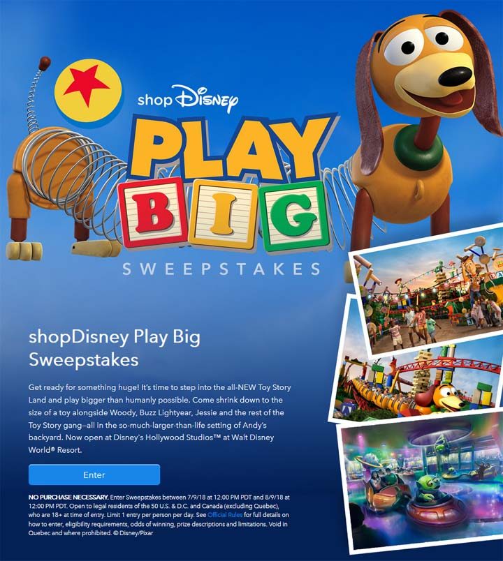 disney-play-big-sweepstakes 0 Comments Tweet Pin it Don't miss any Contests. Be the first to be informed by email. Subscribe me !