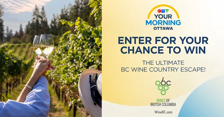 Enter the Ultimate BC Wine Country Escape with CTV Your Morning Ottawa for a chance to win a trip for two to BC Wine Country, including flights, accommodation, winery tours, and meals.